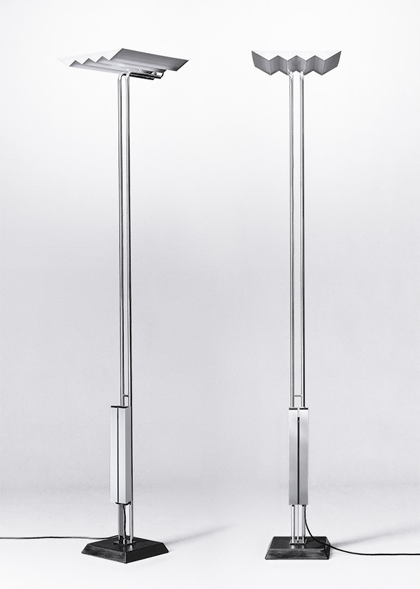 Anlässlich einer Lichtplanung für die dunklen historischen Räume des Bezirksgerichts der Stadt Luzern entwickeln Rosmarie und Gabriel in kurzer Zeit eine lichtstarke Stehleuchte mit vier Kompaktlampen.