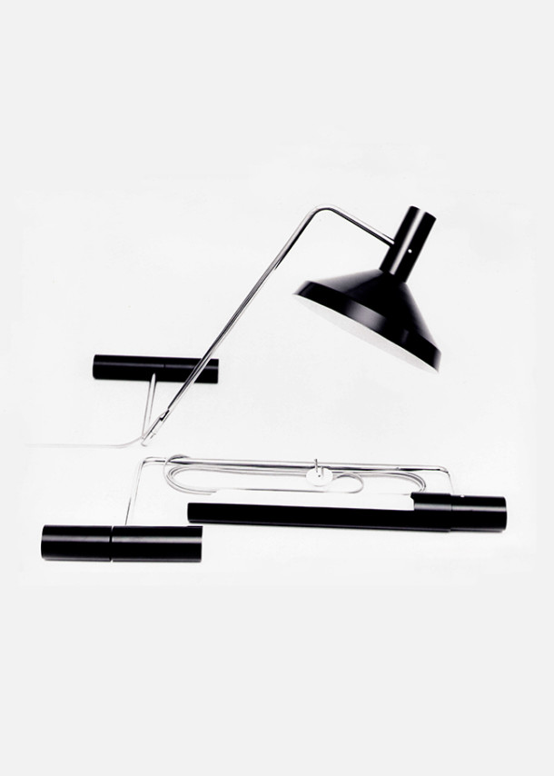 COMBILUX ist eine innovative, modulare Leuchtenfamilie, die auf wenige Komponenten reduziert ist. Die Leuchten haben ein Fassungsrohr (Tubus) als formales und technisches Grundelement, eine Entwicklung vom Leuchtenmodell TYPE 60. Die Reflektoren sind austauschbar. Es können ein Konusreflektor, ein Blendring oder ein Rohrreflektor werkzeuglos eingesetzt werden. Das Gestänge ist auf ein doppelt abgebogenes Rohr mit zwei unsichtbaren Gelenken reduziert. Als Sockel dient ein zweiteiliger Stabstahl, stabilisiert durch das Gestänge.