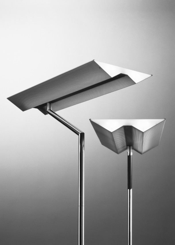 Die Leuchtenfamilie ECO übernimmt die Formensprache und die Lichttechnik von ALADIN, ist aber auf eine rationellere Produktion ausgelegt. Spritzgussteile ersetzen Frästeile, die aufwendige Lötarbeit am Ständer entfällt, der Reflektor wird mit einem Strangpresspofil stabilisiert. Die Leuchte kann in der Höhe verstellt werden. Der schwenkbare Reflektor von ECO mit zwei Leuchtmitteln kann optimal den verschiedenen Ansprüchen angepasst werden. Für grössere Räume ist die Leuchte ECO DOPPIO mit den einzeln schwenkbaren Reflektoren vorgesehen. Mit ECO haben die Aufgaben rund um die Beleuchtungsplanung, die Zusammenarbeit mit Architektinnen und Architekten sowie die Anfertigung von Sonderleuchten zugenommen. Diese zusätzlichen Aufgaben werden eine Herausforderung für das kleine Entwicklungsteam.