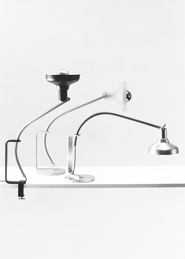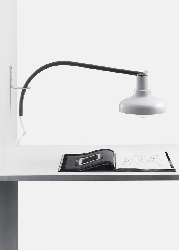 Die Tisch-, Klammer- und Wandleuchten ISO bilden eine Leuchtenfamilie mit neuer Formensprache. Runde Formen dominieren, der technische Ausdruck verschwindet. Hier wird die Verwendung von Kunststoff im Leuchtenbau weiterverfolgt und zur Schau gestellt wie bei GUGGERLI. Als Trägermaterial kommt gebogenes Isolierrohr zum Einsatz. Es wird in vielen Positionen durch Schwerkraft gehalten. Ein gleichzeitig freches und geniales Gelenk, das die Handschrift von