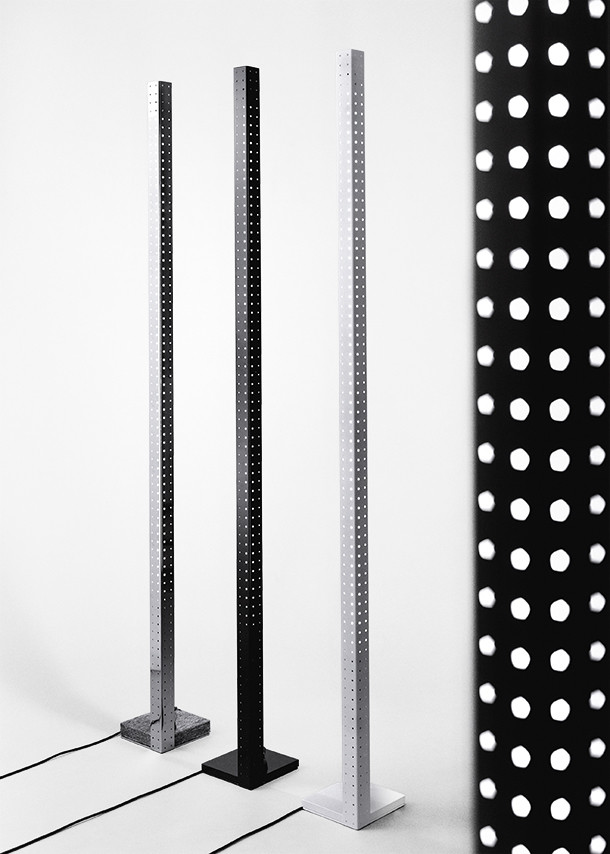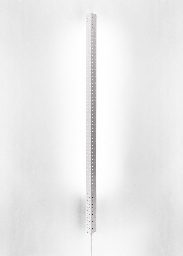 Besondere Herausforderung ist, das unbeliebte «Röhrenlicht» für den Wohnraum «salonfähig» zu machen. Die Antwort ist eine senkrechte Stele mit brillanten Lichtpunkten. Mit dem neuen Leuchtmittel ändern sich Formensprache und Bearbeitungstechniken, entsprechend lang dauert es, bis die Leuchte in Produktion geht.