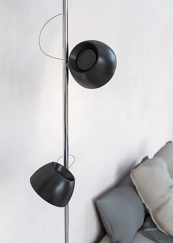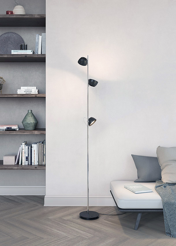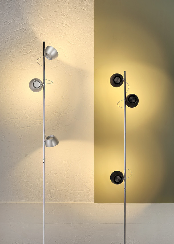 Die Stehleuchte IRIO bietet ein Maximum an Lichtmenge und -variabilität bei einer minimalistischen und schlichten Formsprache. Die drei Leuchtenköpfe können durch die Magnetkontakte werkzeuglos entlang der Stange frei positioniert, gedreht oder in ihrer Achse geneigt werden. Je nach Raum und Anwendung lassen sich verschiedene Lichtsituationen spielerisch inszenieren.