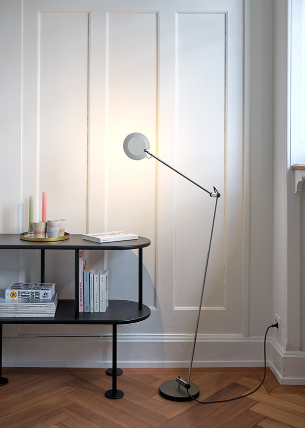 PIO ist eine LED-Leseleuchte mit grossem Aktionsradius. Das feine Gestänge mit den vier Gelenken trägt den kreisrunden Leuchtenkopf. Das hocheffiziente Licht der Power-LEDs sowie der grosse Aktionsradius des Gestänges machen PIO zur idealen Leseleuchte im Wohn- und Objektbereich. Im Betrieb manifestiert sich ein feiner Lichtschein an der Kante des Leuchtenkopfes.