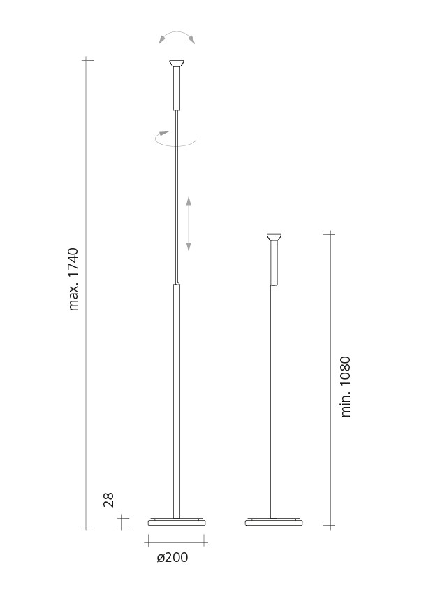 Teleskop alu eloxiert Sockel Dimmer, Kabel und Betriebsgerät integriert Kabel schwarz Steuerung dimmbar stufenlos Teleskop verstellbar: 1.08 - 1.74m