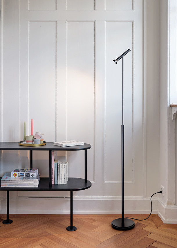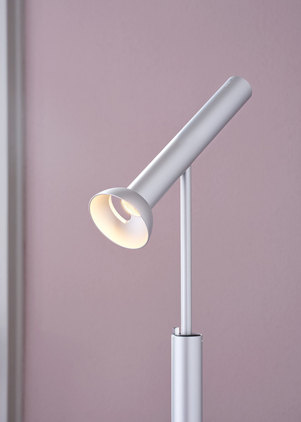 Die Stehleuchte TOPOLED S überzeugt durch das filigrane, minimalistische Design und ihre hohe Funktionalität. Der zylindrische Leuchtenkopf lässt sich präzise ausrichten und trägt zur schlichten, aber edlen Optik bei. Die Leuchte fügt sich nahtlos in jedes Interieur ein und setzt stilvolle Akzente.