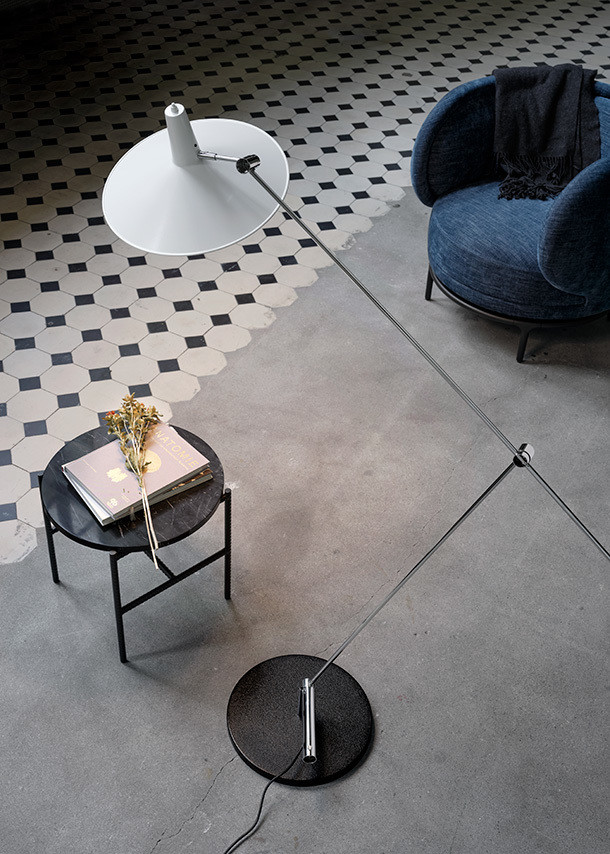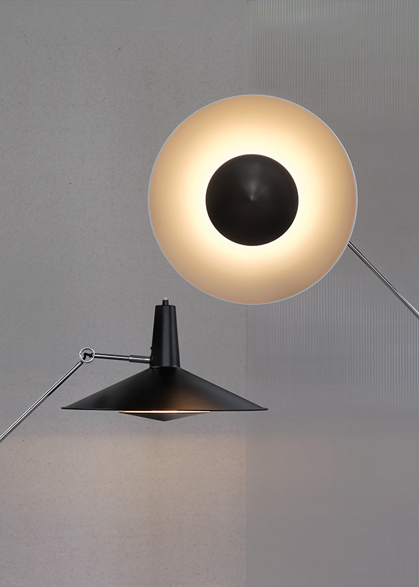 Die TYPE 600 wird von Rosmarie und Rico Baltensweiler für den Eigengebrauch entworfen und hergestellt. Innovative Technik und schlichtes Design sind erfolgreich, die Leuchte wird schnell bekannt und führt 1951 zur Firmengründung. Der grosse konische Reflektor und ein kleinerer konischer Gegenreflektor geben der Leuchte das typische Erscheinungsbild: ein runder dunkler Fleck auf hell erleuchtetem Weiss. Effektvoll und innovativ: ein Gestänge mit sechs Gelenken und grossem Gegengewicht sowie das Gelenk mit Torsionsfeder über dem Sockel, das einen grossen Aktionsradius des Reflektors ermöglicht.